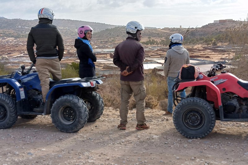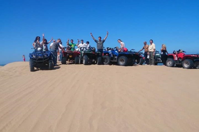 Enjoy a half-day quad bike ride exploring the landscapes of Essaouira, including a delicious meal amidst the dunes and forest, combining adventure and culinary delight.